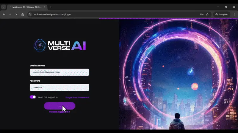 Log into the Multiverse AI dashboard with your credentials and get instant access—no downloads or setup required.