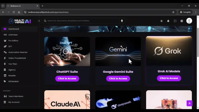 This platform is built to make AI work for you effortlessly. You can use premium models like GPT-4o Mini or Gemini 1.5 Pro without ever switching apps or paying extra. Plus, it’s future-proof—all upcoming AI versions are automatically included for life. Whether you’re creating content, videos, images, or voiceovers, Multiverse AI streamlines the entire process, saving time and eliminating tech struggles.